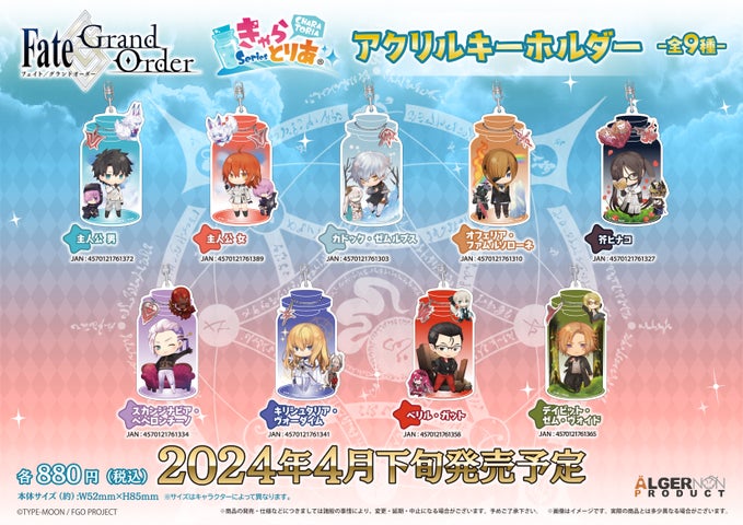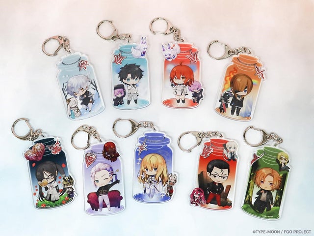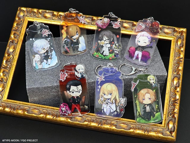 アクリルスタンドはサーヴァントたちが立体的に表現され、キーホルダーは令呪をチャームにしています。