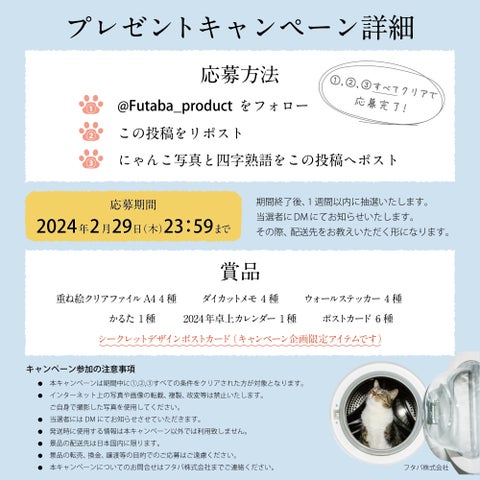 - 2/22猫の日記念キャンペーン開催、クリアファイルやかるたなど