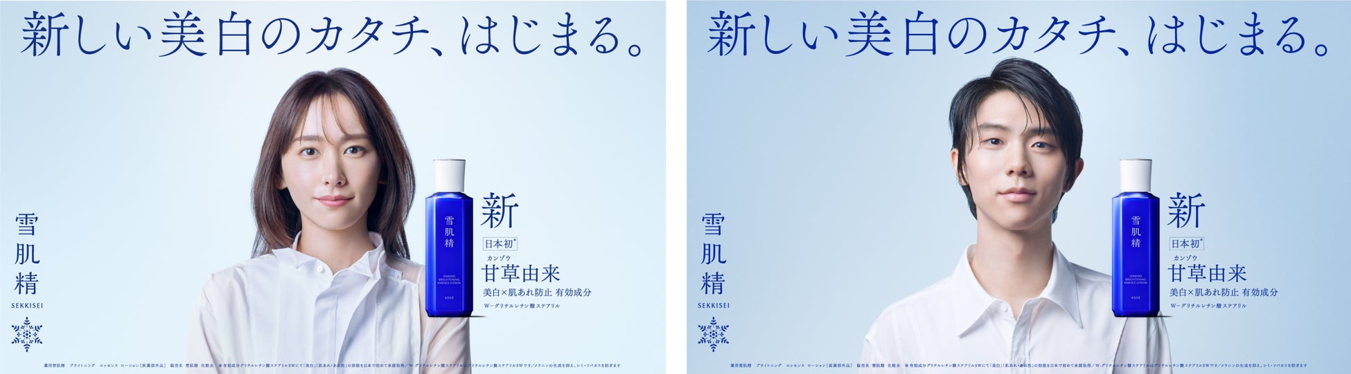 3月1日に発売される「薬用雪肌精 ブライトニング エッセンス ローション」は、新たに美白・肌あれ防止効果のある甘草由来有効成分を配合し、シミ予防と肌あれケアを同時に叶える化粧水としてパワーアップしました。