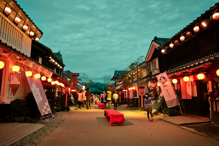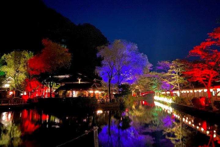 ライトアップされた町並みで忍者や花魁のアトラクション、ライブ演奏を楽しめます。
