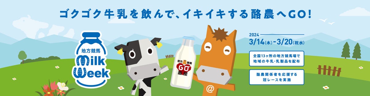 期間は2024年3月14日(木)から3月20日(祝水)までで、全国の地方競馬場で牛乳や乳製品の配布や特別レースが行われます。