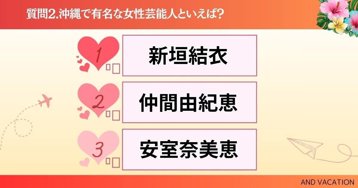 沖縄&リゾート・ホテル情報メディア「&VACATION」が実施したアンケートによると、沖縄は自然環境や文化、芸能で知られ、女性芸能人も活躍しています。