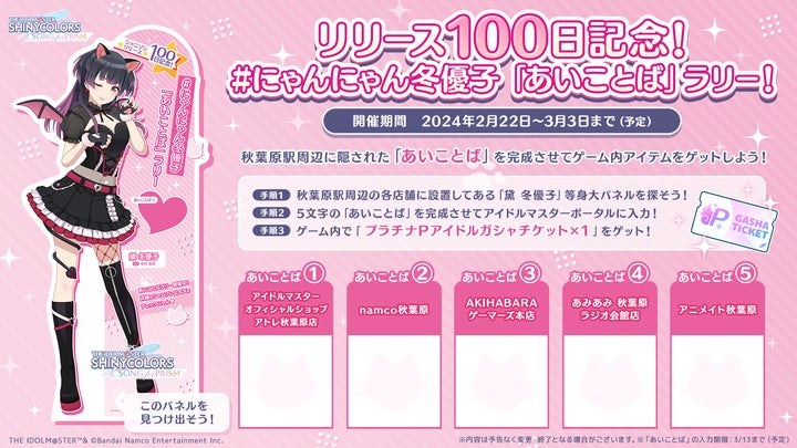 また、黛冬優子の「あいことば」ラリーも秋葉原駅周辺で開催されています。