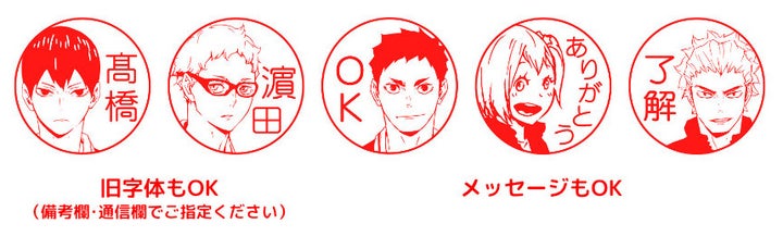 - はんこコレクションでは、烏野高校や音駒高校のキャラクターを選んでオーダーメイド可能。