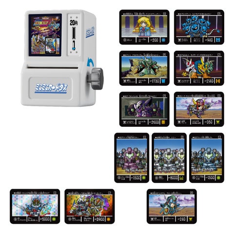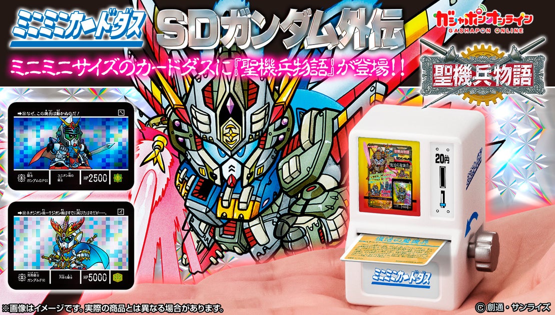 2024年2月22日(木)から予約が開始される『ミニミニカードダスSDガンダム外伝 聖機兵物語』は、全8種類のトレーディングカードを手のひらサイズのミニチュア玩具として再現した商品です。