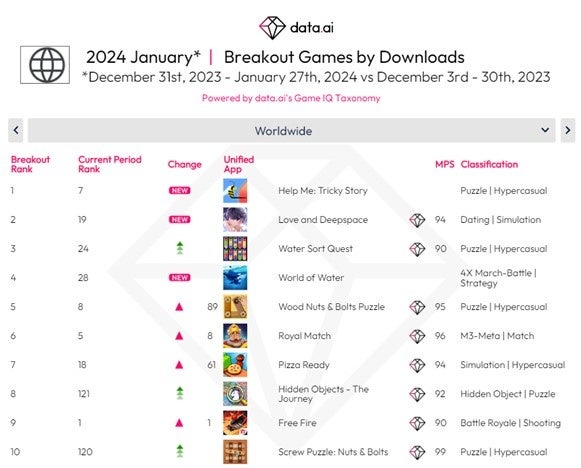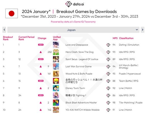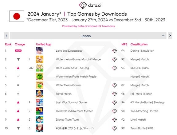 - 2024年1月18日のリリース後、1か月で全世界で1000万ダウンロード達成、国内ランキング1位獲得