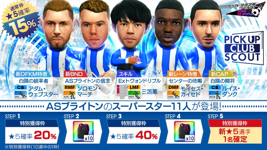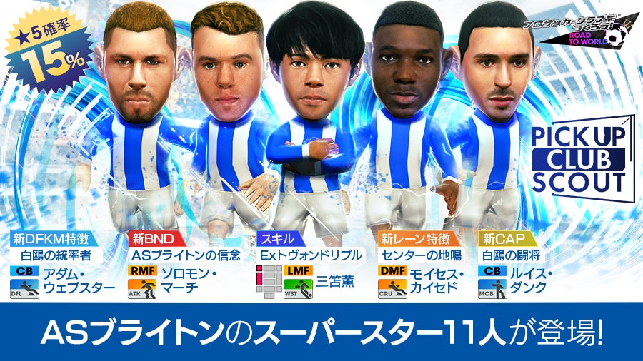 スポーツ育成シミュレーションゲーム『プロサッカークラブをつくろう! ロード・トゥ・ワールド』では、イングランドクラブの「中央突破」を得意戦術とする新★5選手が登場する“ピックアップクラブSCOUT”を開催中。