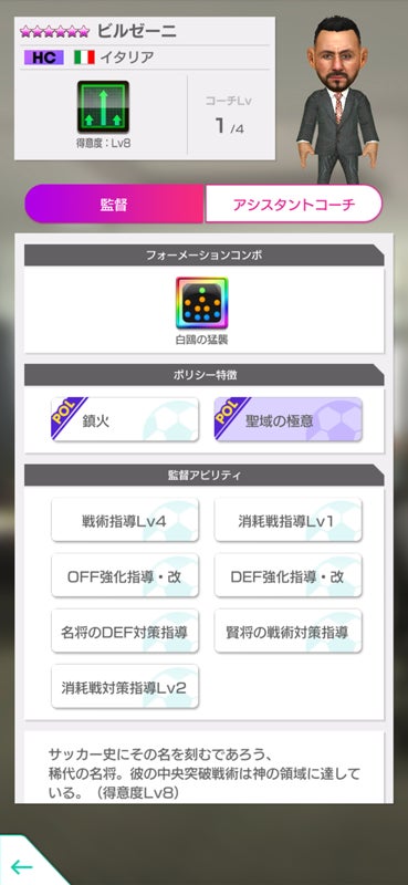 CCTは、ホーム&アウェイ方式のカップ戦を繰り返しプレイして、試合の勝敗や内容によって獲得できるCCT専用ポイントでランキングを競うイベントです。今回は400,000ポイントの達成報酬で、該当の選手を編成すると強くなるフォーメーションコンボ「白鴎の猛襲」を持つ新★6監督「ビルゼーニ」が獲得できます。また、新★6監督「ビルゼーニ」を当イベントで使用するとポイントにボーナスが付きます。