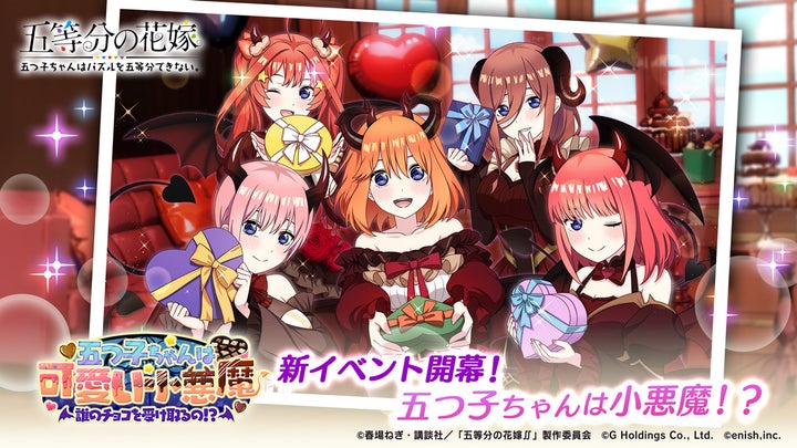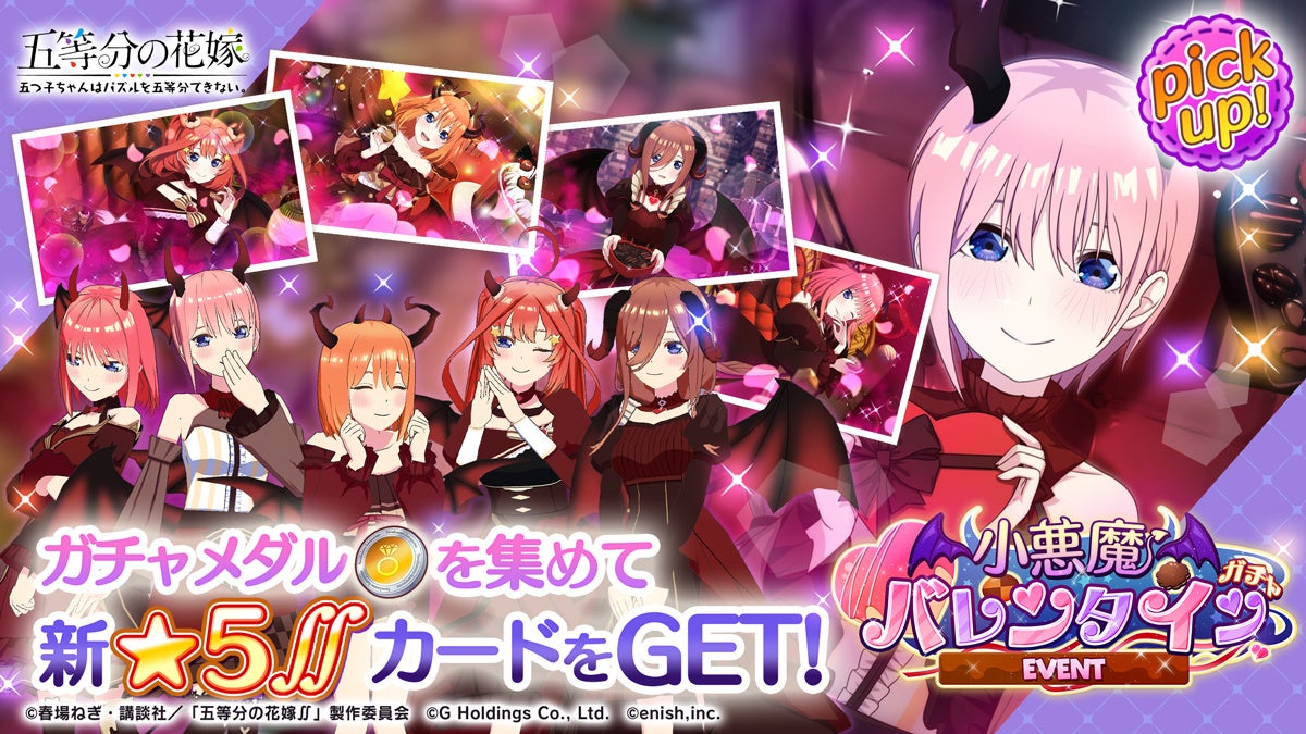 「五等分の花嫁」ゲームアプリの新イベント「五つ子ちゃんは可愛い小悪魔 ~誰のチョコを受け取るの!?~」が開催中です。