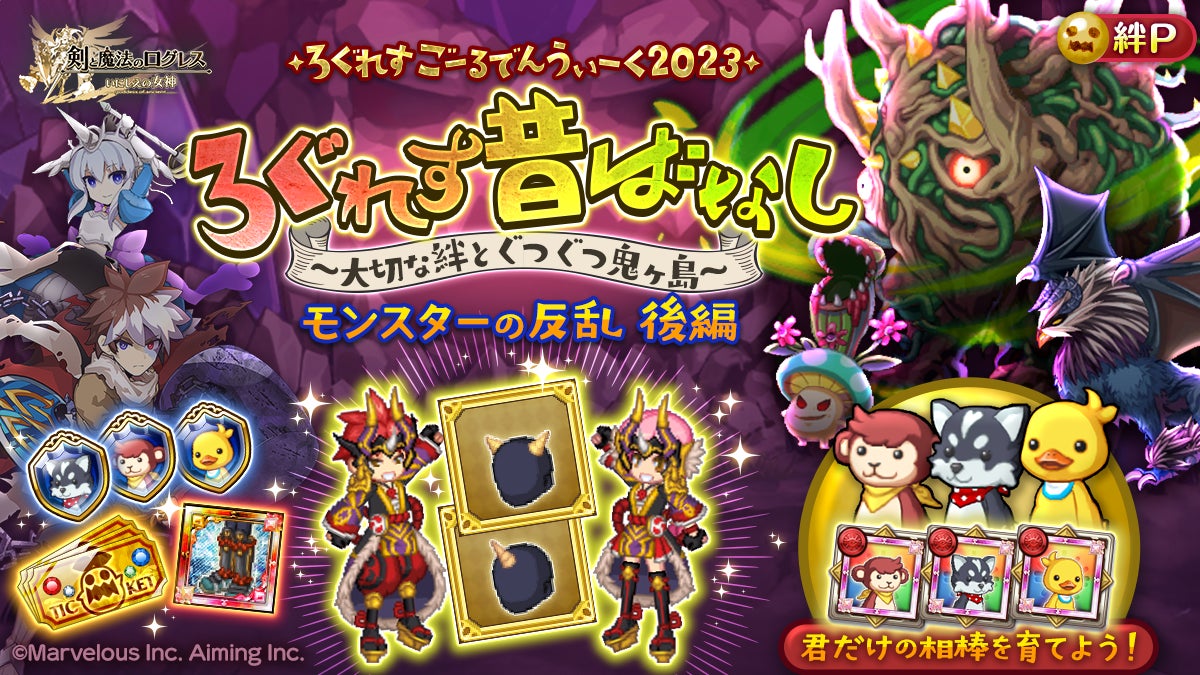 - 物語のクライマックスが迎えられる「ろぐれす昔ばなし~大切な絆とぐつぐつ鬼ヶ島~」や、ログレス大戦「ゴールデンスペシャルカップ2023」など、様々なイベントも開催中