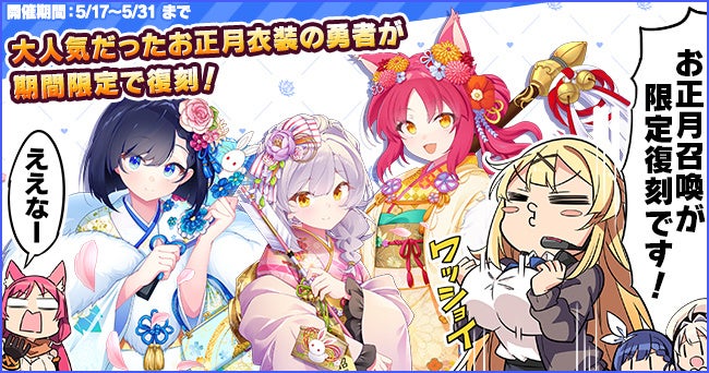 5月17日のメンテナンス後より、期間限定で「復刻お正月ピックアップ召喚」が開催中です。本ガチャでは、『シグルーン(晴れ着)』『アーニャ(晴れ着)』『レト(晴れ着)』の3体をピックアップ!