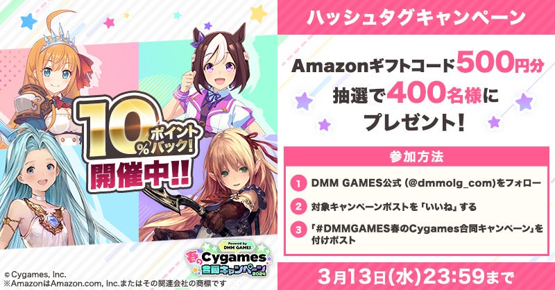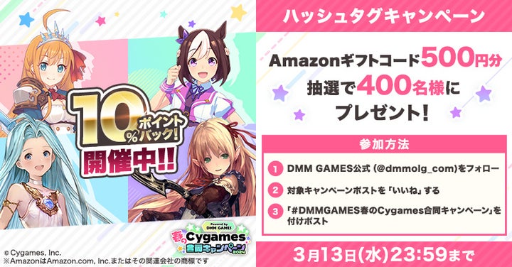 対象タイトルは『ウマ娘 プリティーダービー』、『グランブルーファンタジー』、『Shadowverse』、『プリンセスコネクト!Re:Dive』です。