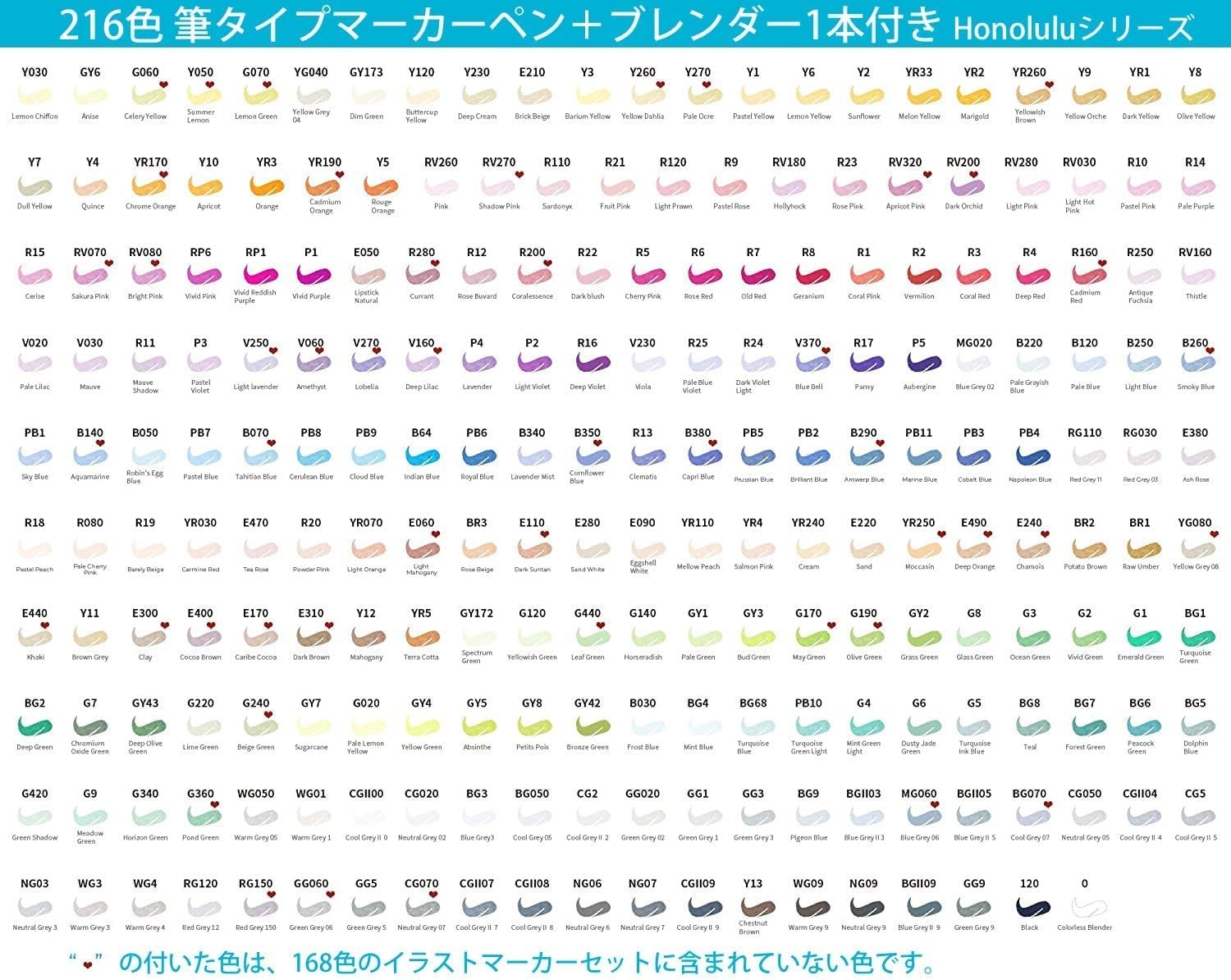 Ohuhuイラストマーカー216色(筆・太字/筆・細字)