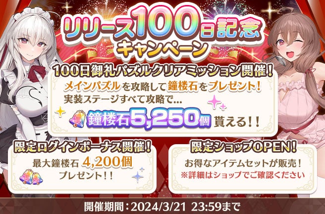 また、3月21日までにメインパズルを攻略すると最大5,250個の「鐘楼石」がプレゼントされます。