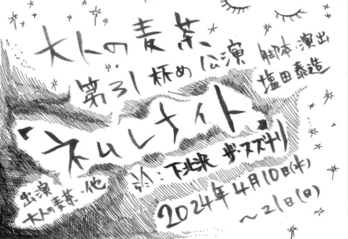 2024年4月に開催される劇団「大人の麦茶」の最終公演「ネムレナイト」が発表されました。