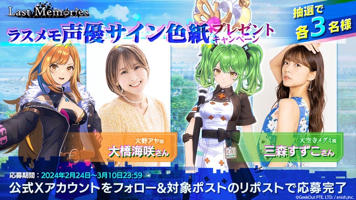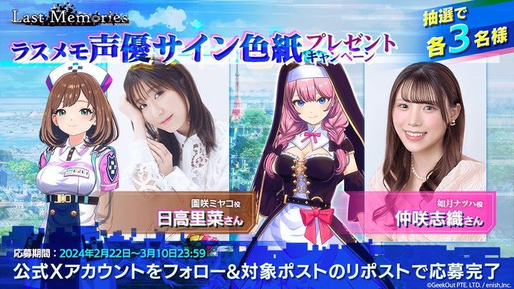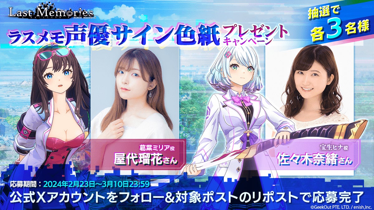 2月29日からの事前登録キャンペーンや、声優のサイン色紙プレゼントキャンペーンも実施中です。