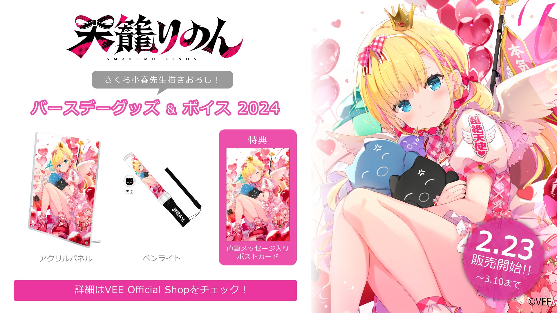 VEE Official Shopでは、天籠りのんの誕生日を祝うバースデーグッズとボイスコンテンツが販売中です。