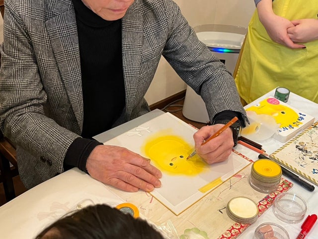 作者のいりやまさとしさんを招いたイベントでは、歌やお顔の体操を楽しむ参加者が多く、絵本の誕生秘話や作画の実演も行われました。