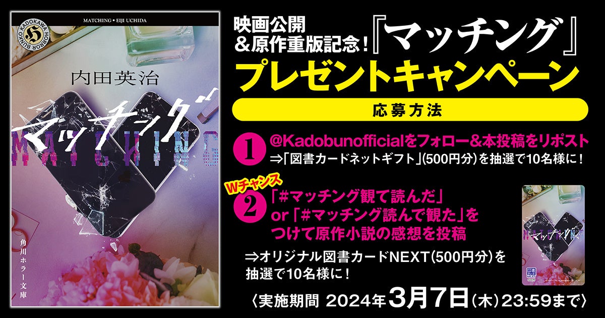 内田英治監督の最新作「マッチング」が本日公開されました!原作小説も好評で重版決定。