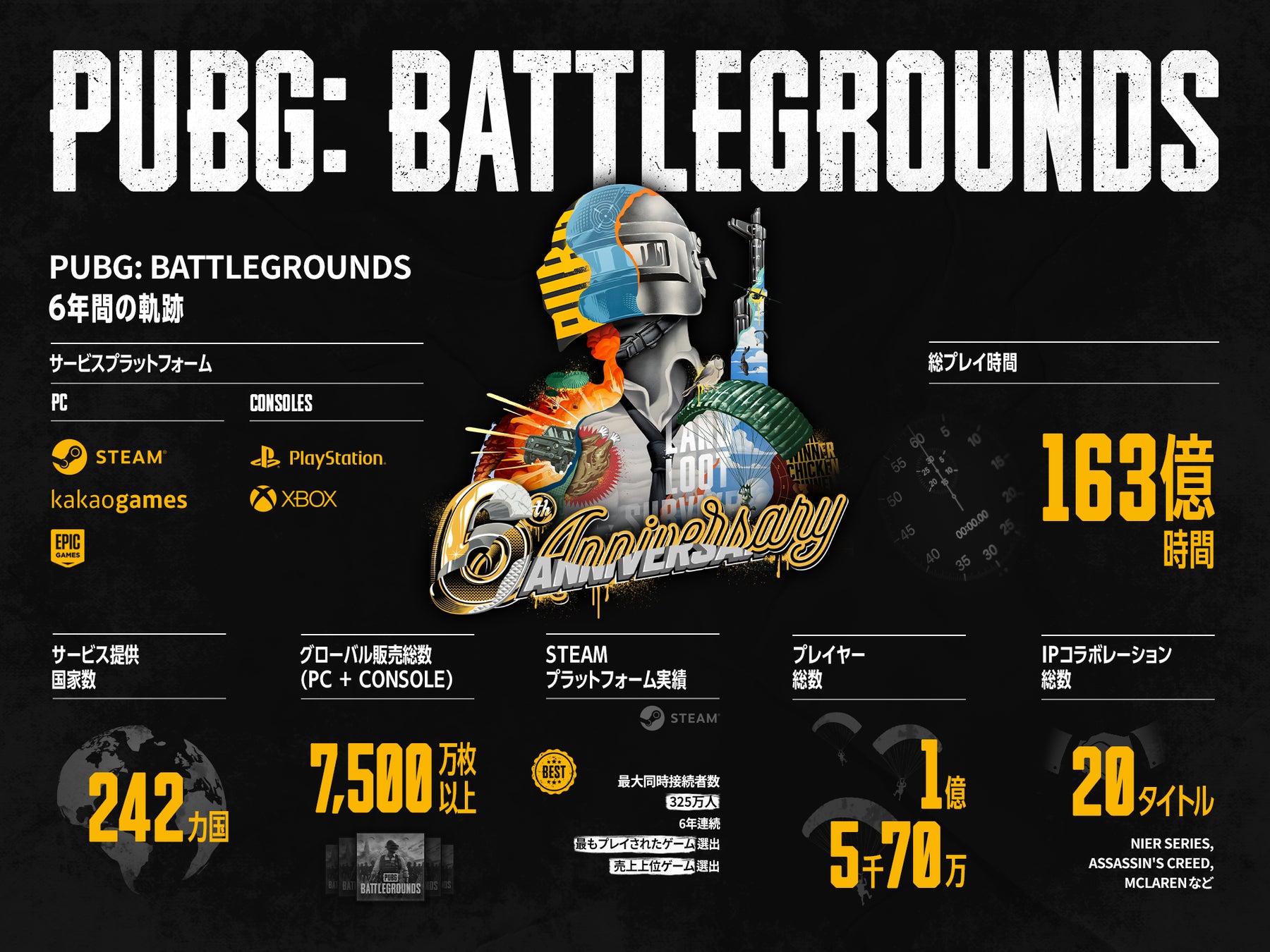 PUBG: BATTLEGROUNDSがリリース6周年を迎え、KRAFTONが6年間の主要指標を公開しました。
