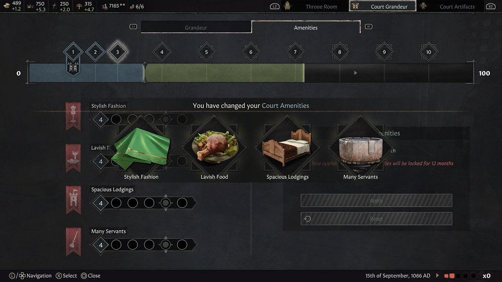 このDLCでは、自分だけの王宮を構築し、表敬した人々から宝物を収集し、王宮役職をもった要人を雇用することで、統治者としての力と名声を強化することができる。