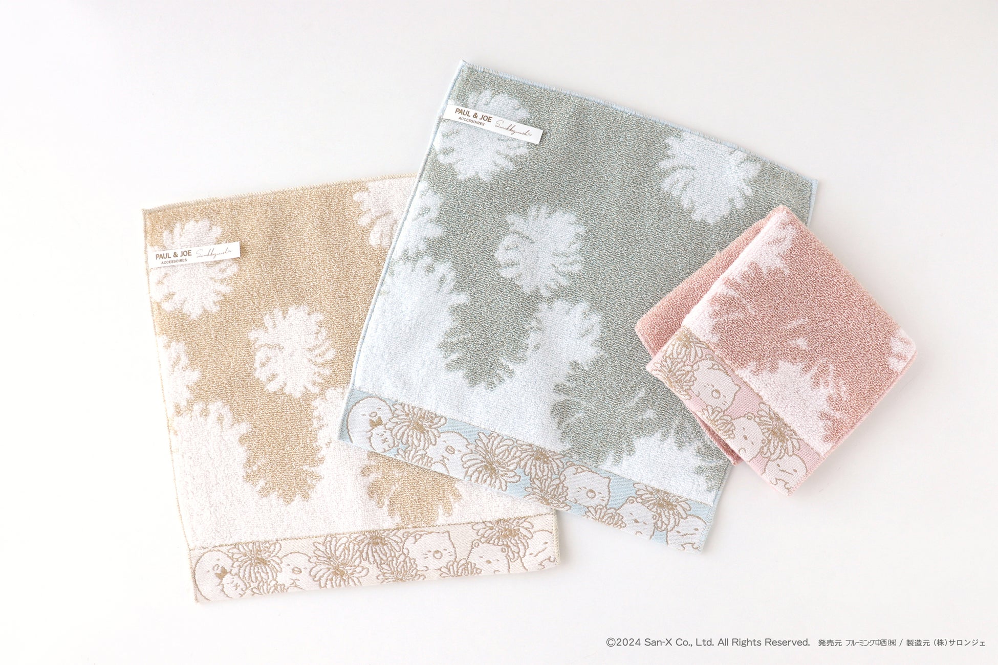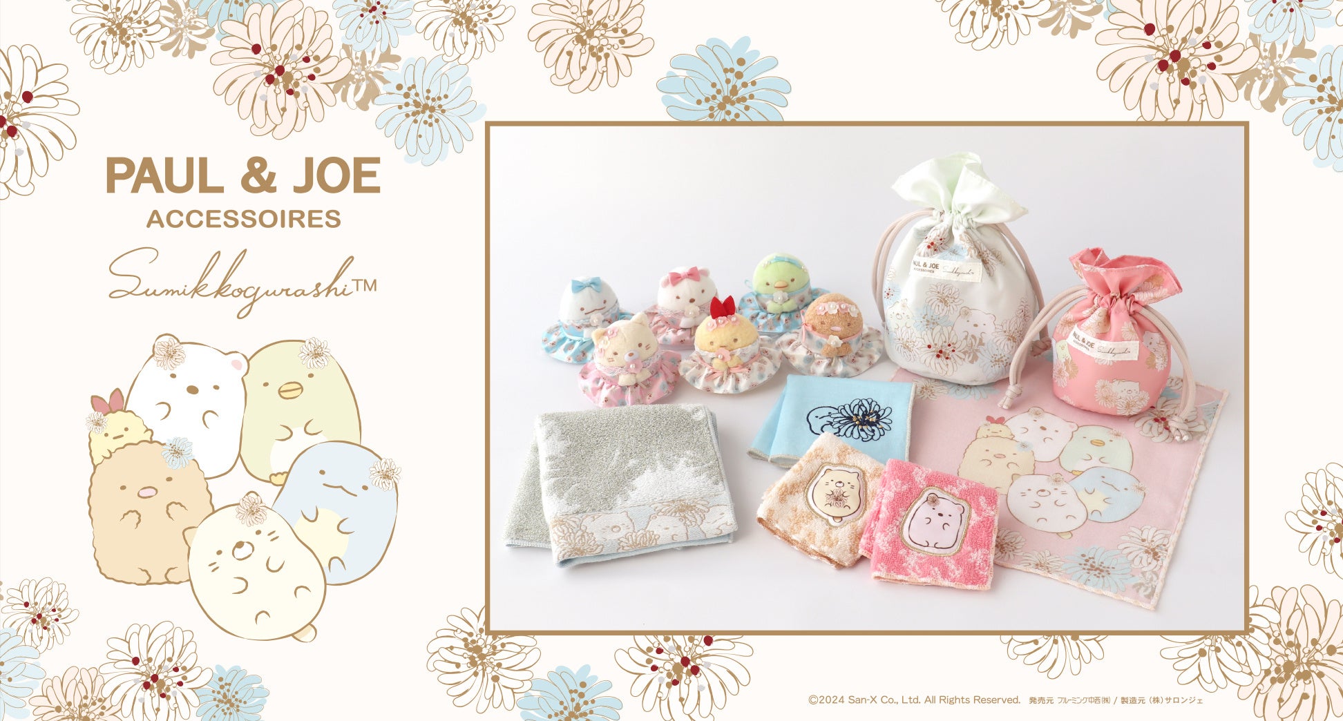 2月28日から、ポール & ジョーのクリザンテームと愛らしいすみっコたちがデザインされたハンカチなどの雑貨アイテムが販売されます。