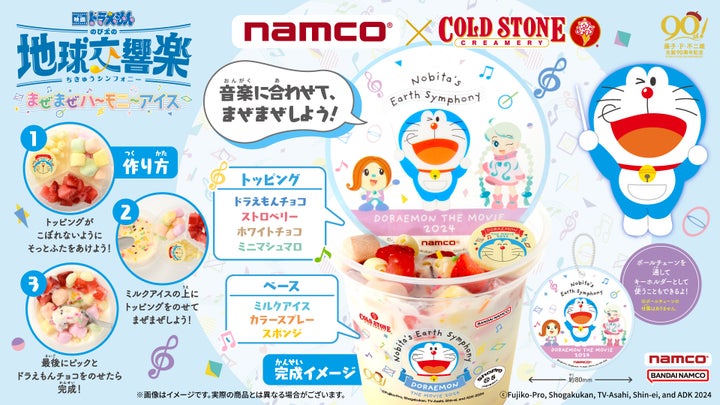2024年2月22日から、バンダイナムコアミューズメントが映画ドラえもんの新作公開を記念して、ナムコ限定の「映画ドラえもん のび太の地球交響楽まぜまぜハーモニーアイス」を提供しています。