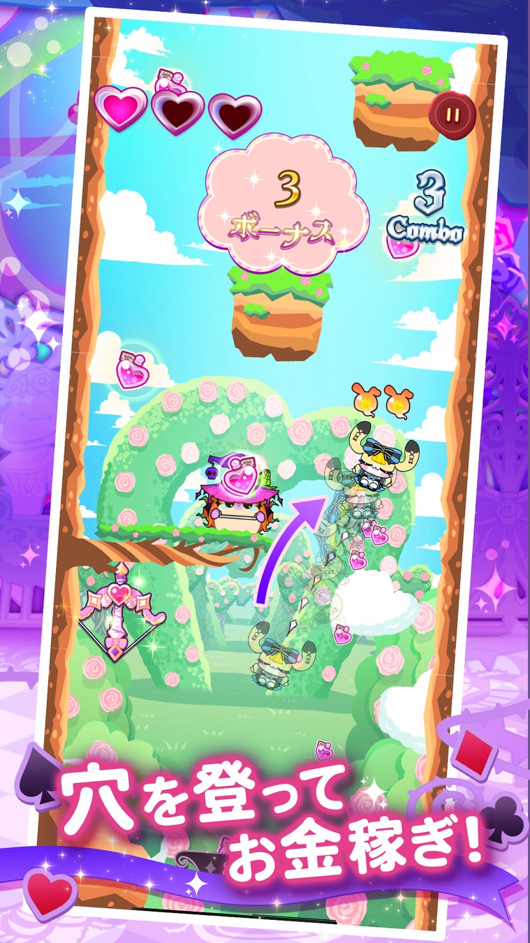 穴を登りながらコインを集め、自分だけの「アンダーランド」をかわいくデコレーションしましょう。