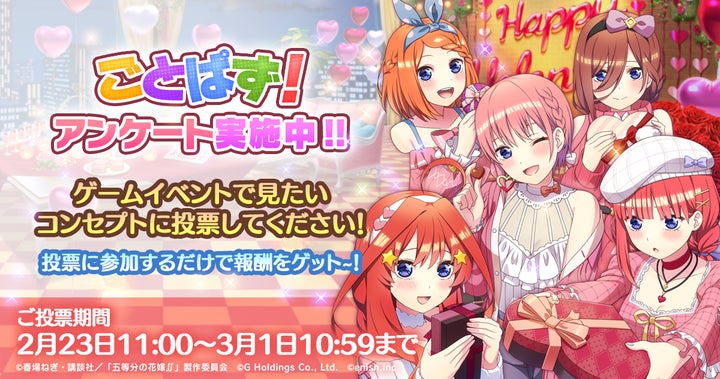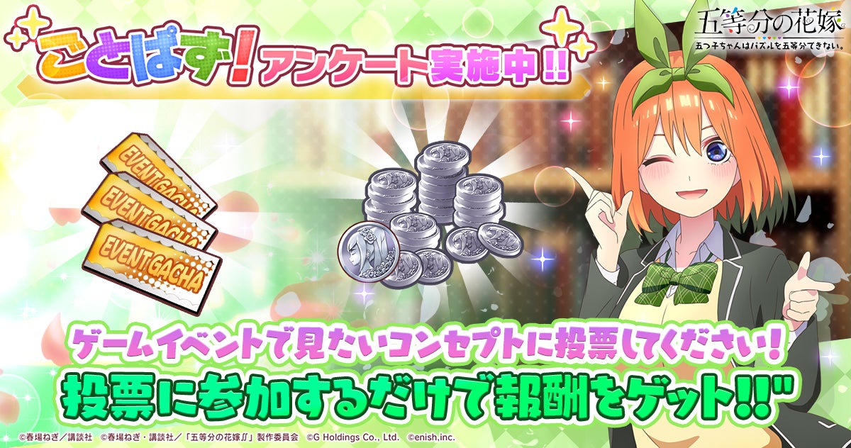 「五等分の花嫁」のゲームイベントに参加しませんか?ユーザーがイベントコンセプトを提案し、投票して選ばれた提案がゲーム内に実装されます。