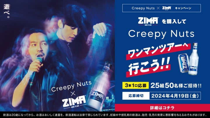 ZIMA購入でCreepy Nutsワンマンツアー当選キャンペーン開始!