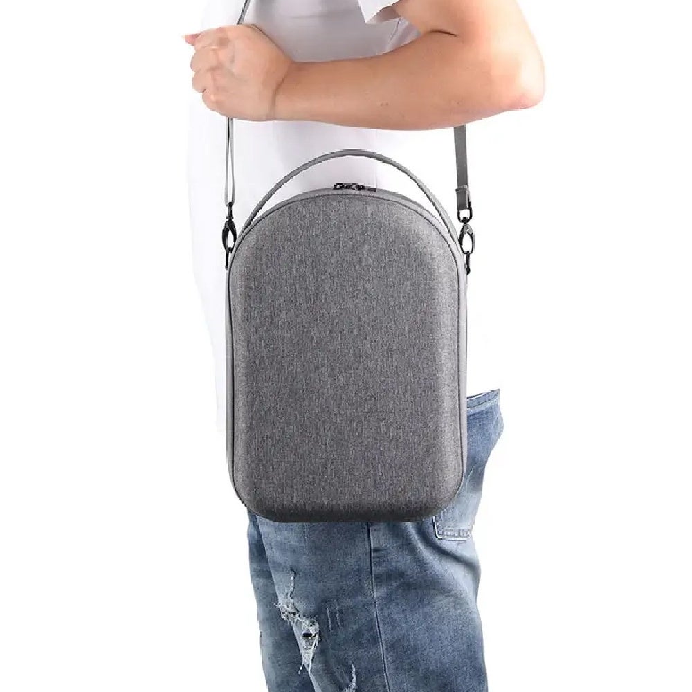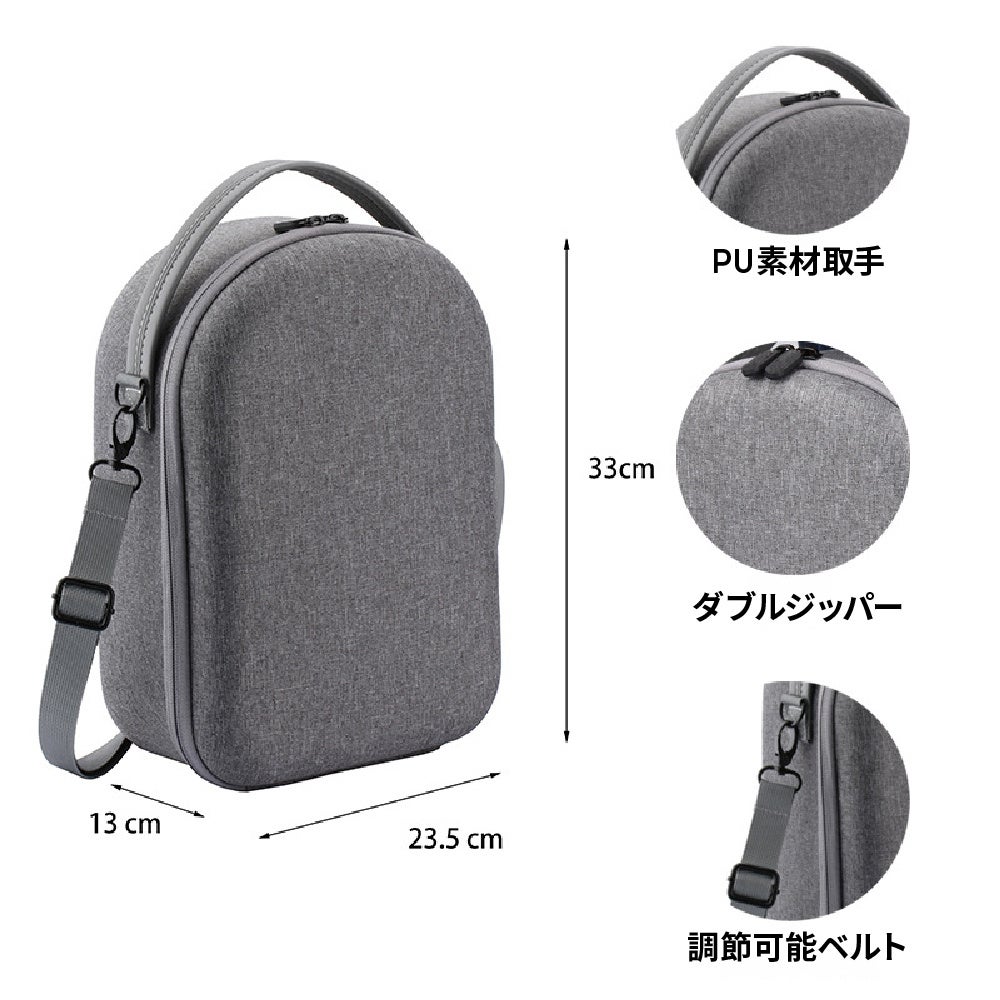 このバッグは、VR機器とコントローラーをまとめて持ち運べるように設計されており、丈夫な素材で衝撃から機器を守る。
