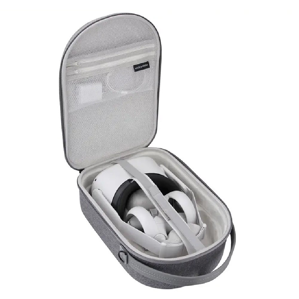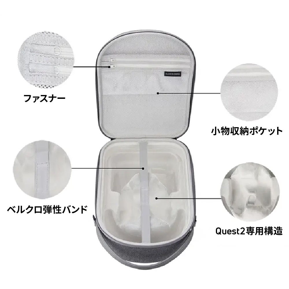 - VR機器とコントローラーをまとめて持ち運べるように設計され、丈夫な素材で衝撃から機器を守る