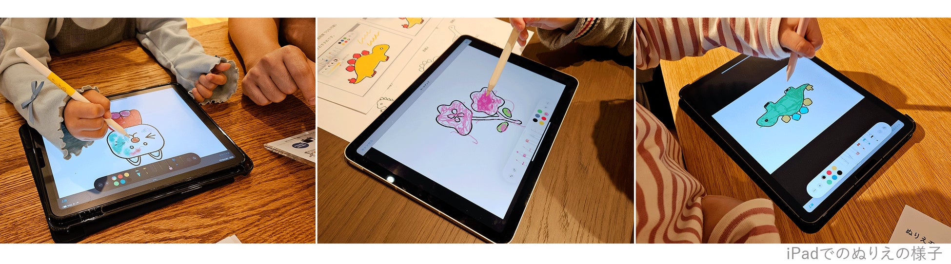 参加者はiPadでオリジナルイラストに塗り絵をして、自分だけのアイテムを作成しました。