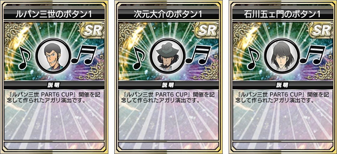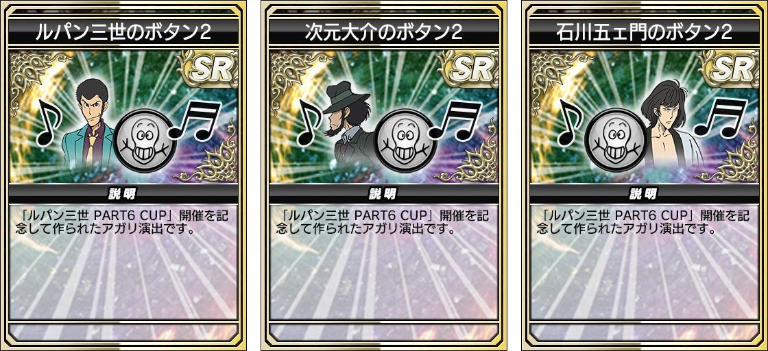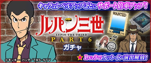 また、『ルパン三世 PART6』コラボガチャも開催され、進化型SPキャラや卓背景、EX背景、EX枠、BGMなどのコラボアイテムが手に入ります。