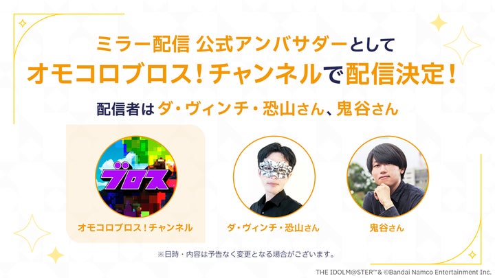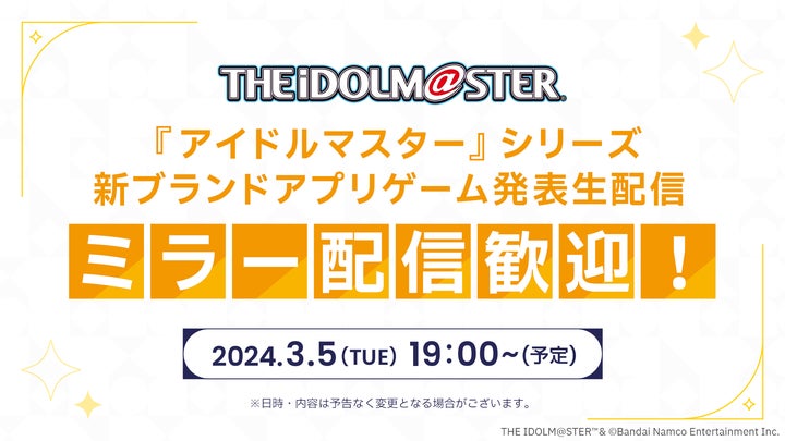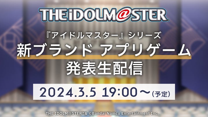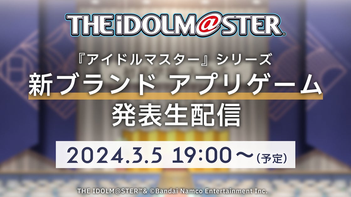 2024年3月5日に行われる『アイドルマスター』シリーズの新ブランドアプリゲーム発表生配信が決定しました。