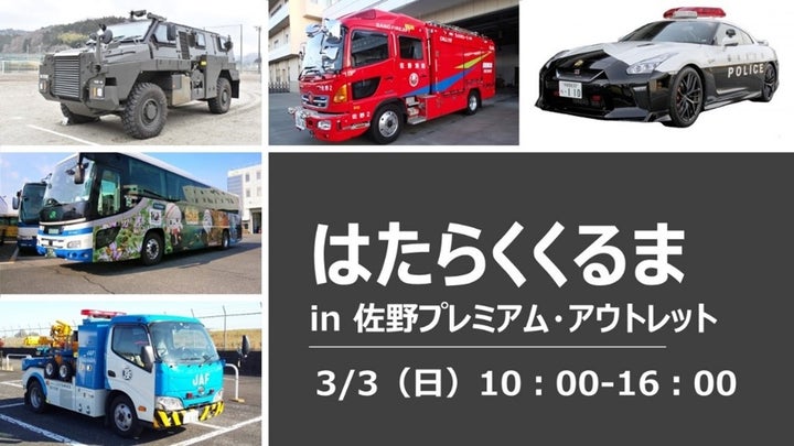- 2024年3月3日に佐野プレミアムアウトレットで「はたらくくるま in佐野プレミアムアウトレット」イベント開催