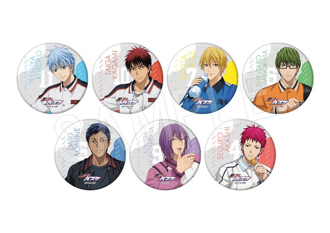 「黒子のバスケ」の新作グッズが「AnimeJapan 2024」で登場!7人のキャラクターが描かれたアクリルスタンドやマット缶バッジなどが販売されます。