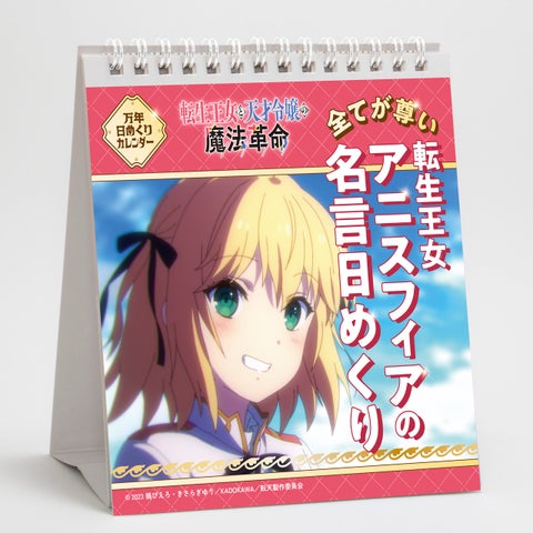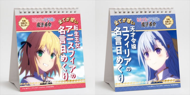 グルーヴガレージ初のシンクロ名言日めくりが登場!転生王女アニスフィアと天才令嬢ユフィリアの名言を楽しめるA5変形サイズのカレンダー。