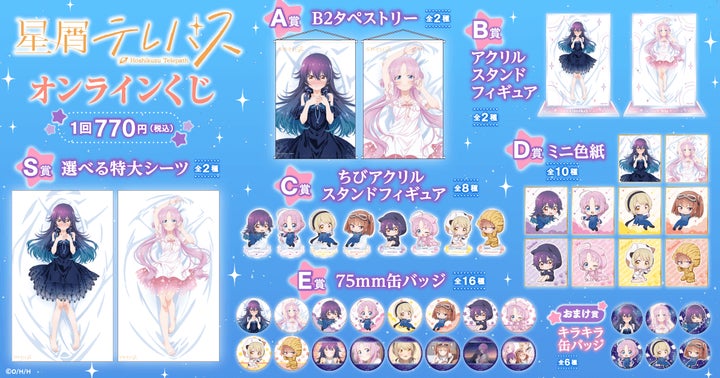 - 商品ラインナップには特大シーツ、B2タペストリー、アクリルスタンドフィギュアなど