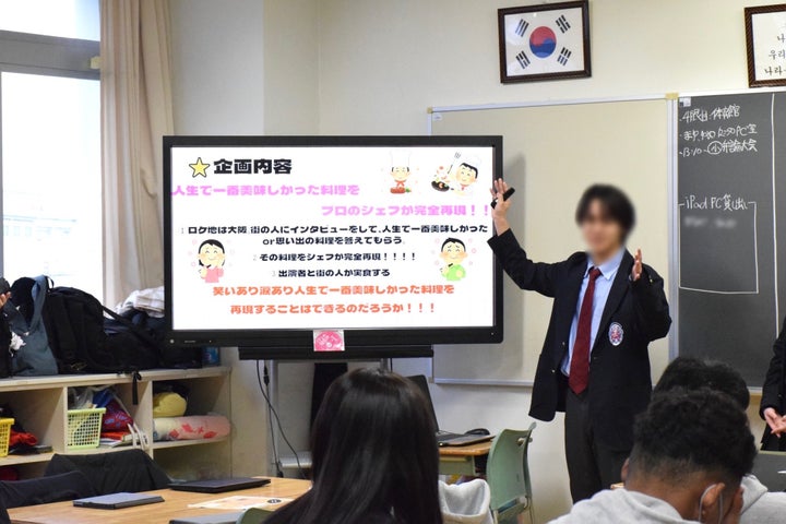 生徒たちはテレビ番組の「街ぶら企画」を考案し、最終授業でプレゼン発表を行いました。