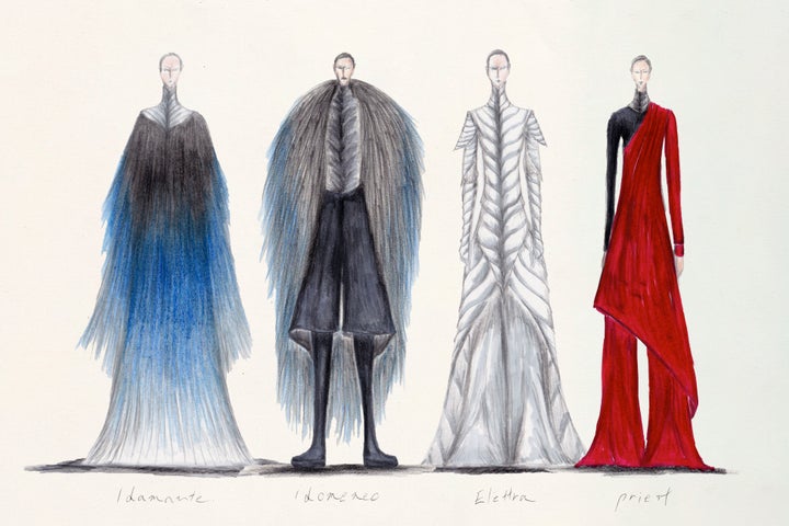 衣装は海をテーマに赤い糸で表現され、登場人物の立場を色で象徴的に表現している。