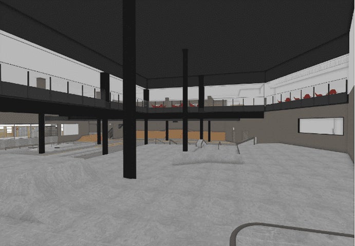 1Fには440坪のスケートパークエリアがあり、西川隆監督がデザインし、初級者からエキスパートまで楽しめるセクションが充実しています。