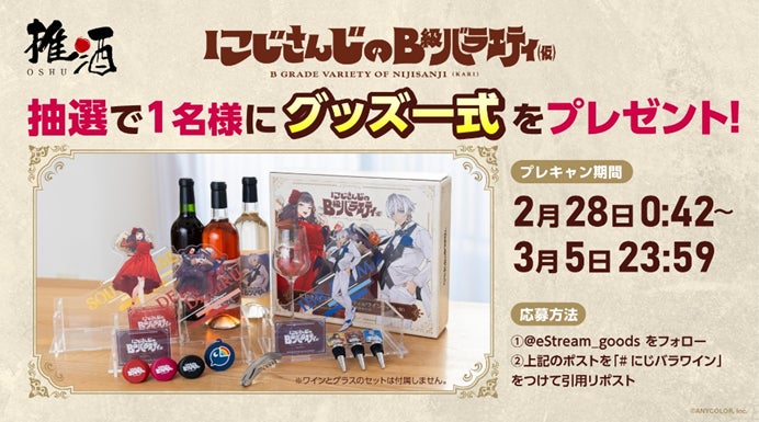 - 株式会社eStreamがにじさんじ公式新番組からA級ワイン3本セットや関連グッズを販売決定