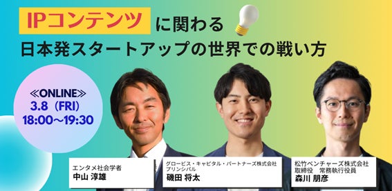 2024年3月8日にオンラインで開催されるイベントは、エンタメ領域の専門家が登壇し、日本の強みであるIPコンテンツの創出と展開について話す予定です。