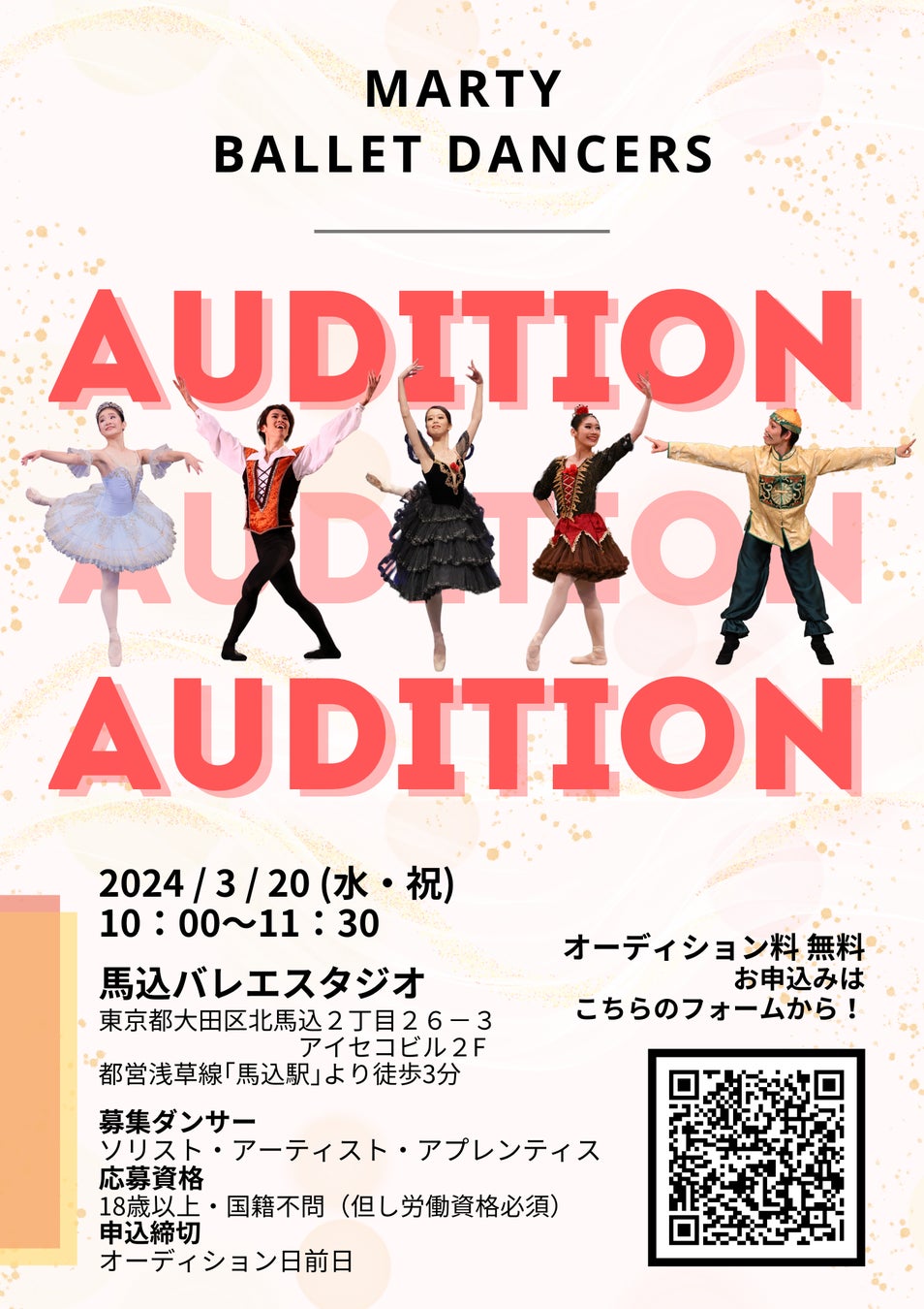 マーティ株式会社を母体に持ち、バレエ用品販売やスタジオ施工などの実績を持つバレエ団です。