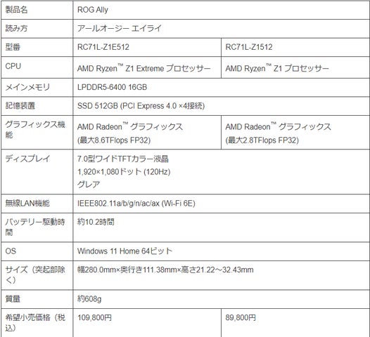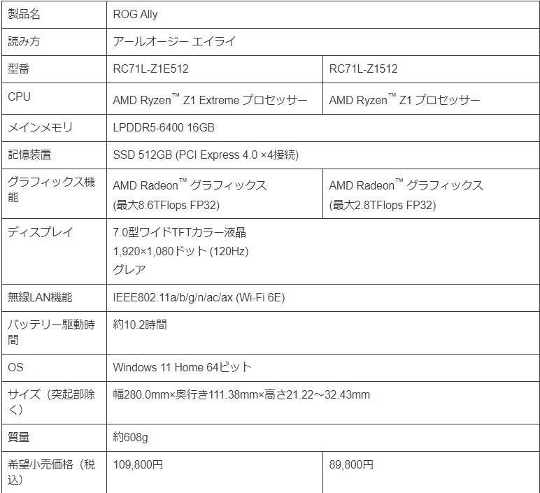 - ROG AllyはAMD Ryzen™ Z1シリーズプロセッサー搭載のポータブルゲーム機
