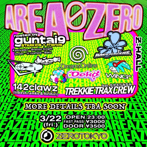 2024年3月22日(金)に開催される『AREA ZERO』イベントでは、guntai9、RAVE RACERS、TREAKKIE TRAXなどが出演し、クロスカルチャーなパーティーが展開されます。