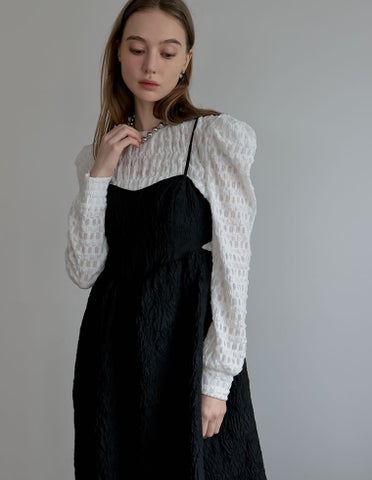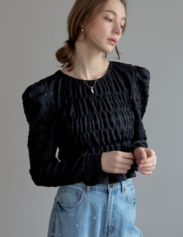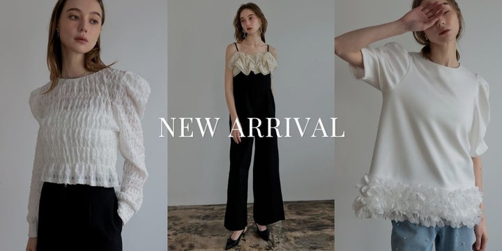 - フラワーモチーフやパフショルダーデザインのエレガントなアイテム