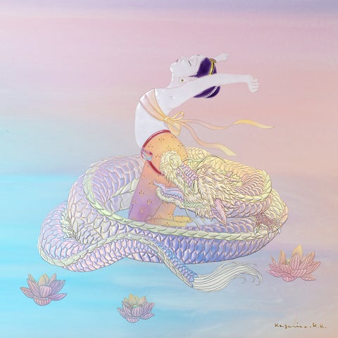 最新作には、辰年にちなんだ『虹龍』や『龍聖母』などがあり、龍や菩薩、日本神話をモチーフにした作品も展示されます。
