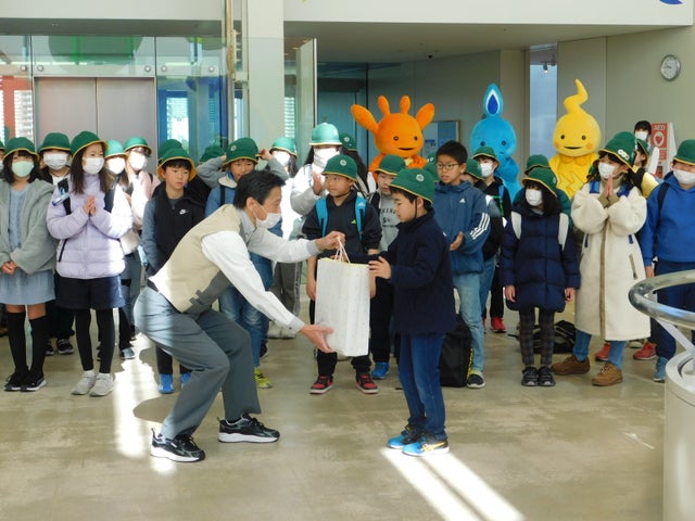 東京都北区立滝野川もみじ小学校の児童が400万人目の来館者となり、記念品を受け取るセレモニーが行われました。